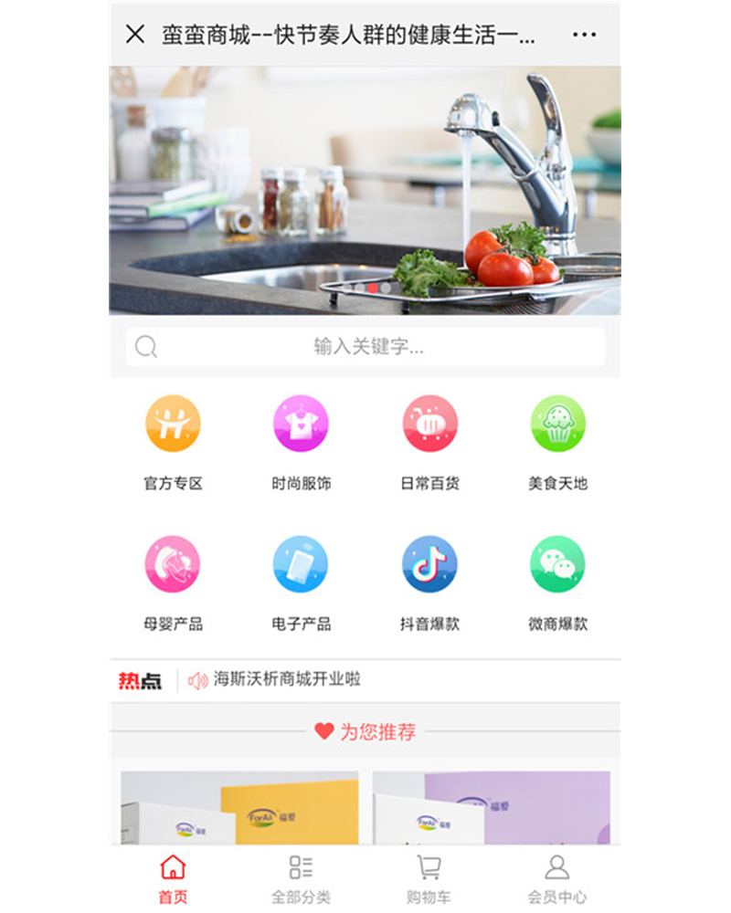 該公眾號(hào)是專為萌娃購(gòu)物平臺(tái),應(yīng)用開(kāi)發(fā)了全部分類、秒殺專區(qū)、拼團(tuán)專區(qū)等功能模塊。